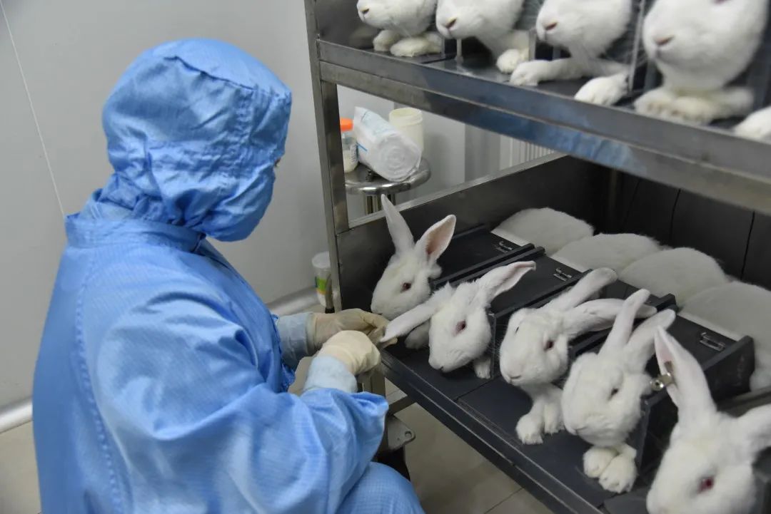 “小兔子乖乖快出來”每天早上9點(diǎn),馮偉玲都和其他同事一起,一邊在兔子耳邊喃喃細(xì)語,一邊輕柔地將生長室里的3只小白兔抓取出來,移到另外的工作室。