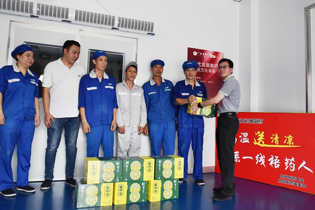 烈日酷暑送清涼 服務(wù)一線戰(zhàn)高溫 ——梧州制藥工會(huì)聯(lián)合安委會(huì)開展“送清涼”慰問活動(dòng)