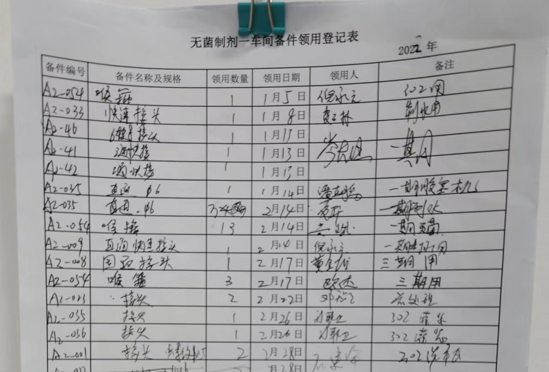 備件室7S管理已初步成形,但還有很大的提升空間。在現(xiàn)有改善成果的基礎(chǔ)上,團(tuán)隊(duì)成員致力于備件室管理規(guī)范化、信息化打造。原來(lái)備件物品的借用流程采用紙質(zhì)登記,該種方式存在記錄流程繁瑣、登記時(shí)間長(zhǎng)、信息不明確等問(wèn)題。針對(duì)該問(wèn)題,備件室對(duì)A貨架試行草料小程序登記出入庫(kù)流程,提升領(lǐng)取備件的速度。