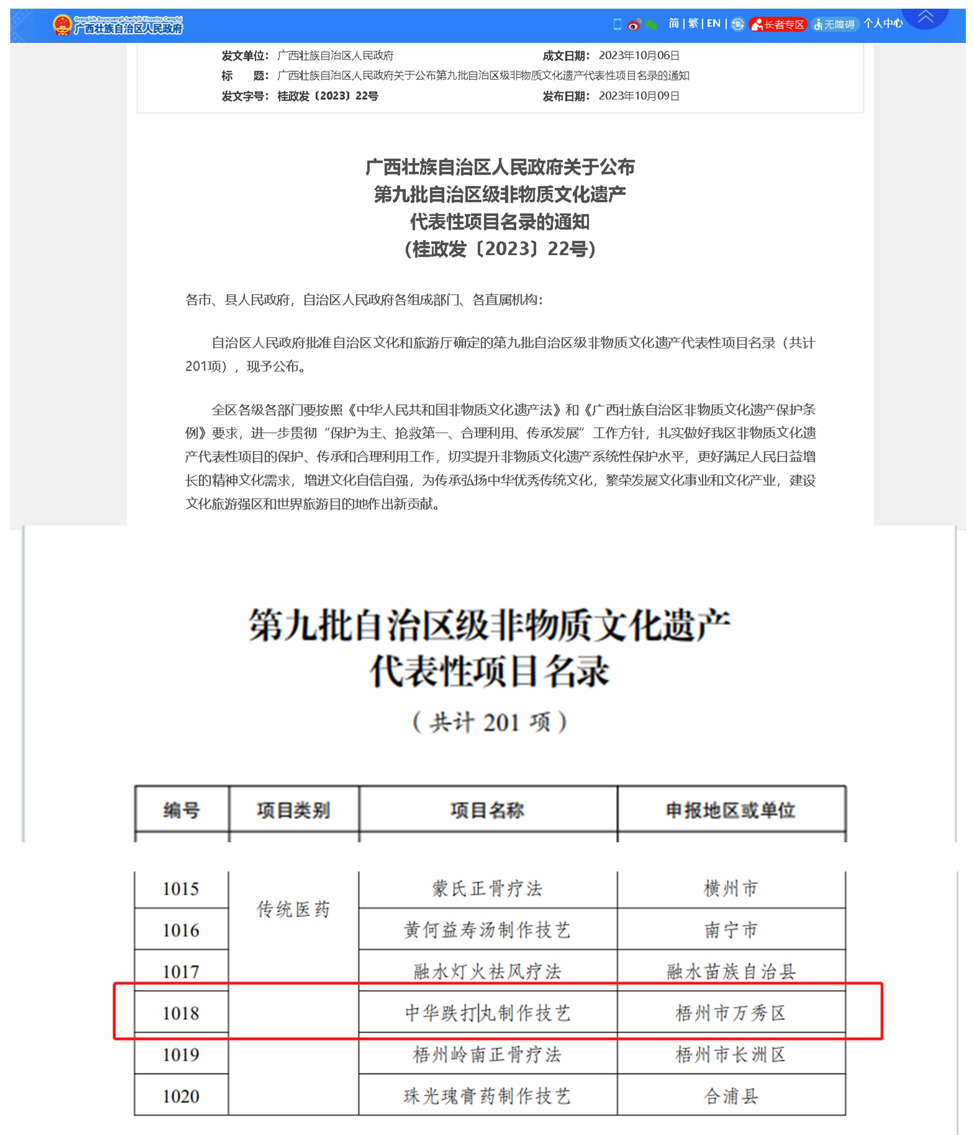 近日,廣西壯族自治區(qū)人民政府公布了第九批自治區(qū)級非物質(zhì)文化遺產(chǎn)代表性項(xiàng)目名錄,梧州制藥申報的中華跌打丸制作技藝成功入選,榜上有名。