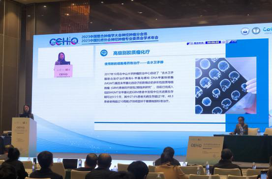 會(huì)上,中山大學(xué)腫瘤防治中心郭琤琤教授為注射用去水衛(wèi)矛醇納入《膠質(zhì)瘤化療中國專家共識(shí)》進(jìn)行詳細(xì)的解讀。她表示,去水衛(wèi)矛醇主要作用機(jī)制是由-鳥嘌呤DNA烷化,具有不受MGMT影響,對(duì)膠質(zhì)瘤細(xì)胞增殖有較高抑制率,血腦屏障(BBB)通過率較高等優(yōu)點(diǎn)。“去水衛(wèi)矛醇聯(lián)合放療治療具有-甲基鳥嘌呤-DNA甲基轉(zhuǎn)移酶 (MGMT)基因未甲基化啟動(dòng)子的新確診的多形性膠質(zhì)母細(xì)胞瘤 (GBM)患者的開放性2期臨床研究”項(xiàng)目顯示:MGMT非甲基化的GBM患者中發(fā)現(xiàn)中位無進(jìn)展生存期可達(dá)9.5個(gè)月,其中27.6%患者無病生存超過1年,48.3%患者使用超過10周期。為醫(yī)師在臨床應(yīng)用中提供更多的依據(jù),有機(jī)會(huì)提高M(jìn)GMT非甲基化的膠質(zhì)瘤患者療效,增加患者生存獲益。