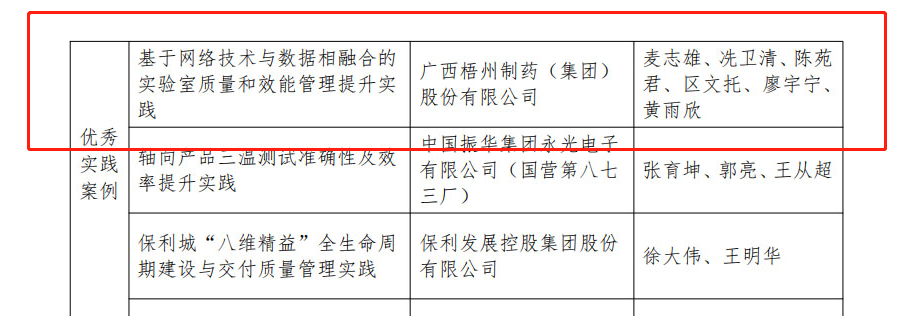 近日,梧州制藥質(zhì)量管理實踐案例《基于網(wǎng)絡(luò)技術(shù)與數(shù)據(jù)相融合的實驗室質(zhì)量和效能管理提升實踐》在商業(yè)科技質(zhì)量中心、《企業(yè)管理》雜志社共同組織開展的2023年企業(yè)質(zhì)量管理優(yōu)秀案例征集活動中,成功入選2023年企業(yè)質(zhì)量管理優(yōu)秀實踐案例。
